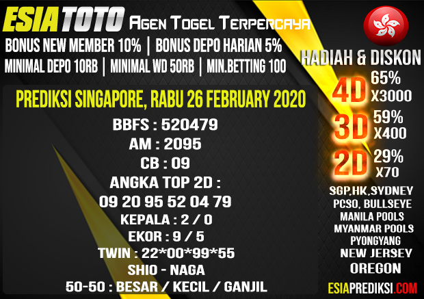 Prediksi Togel Singapore Pools Rabu 26 February 2020 PREDIKSI TOGEL